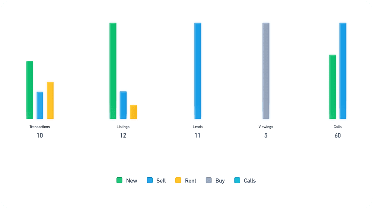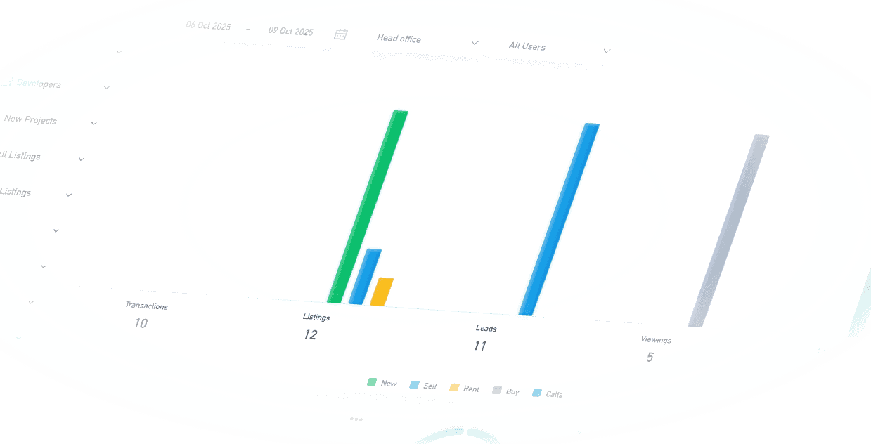 Get a complete snapshot of your business performance, from leads and listings to calls, viewings, and deals all updated in real time.