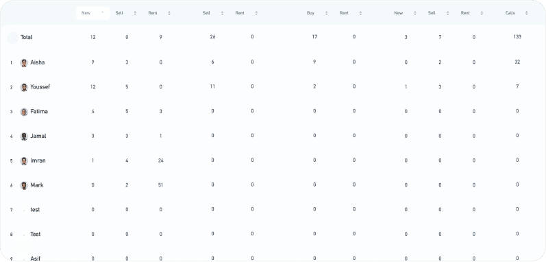 Dive into detailed performance overview with all insights of calls, inventory, viewings, and transactions based on type with interactive visuals. Understand what agents deliver based on resources and best results — and what to optimize.