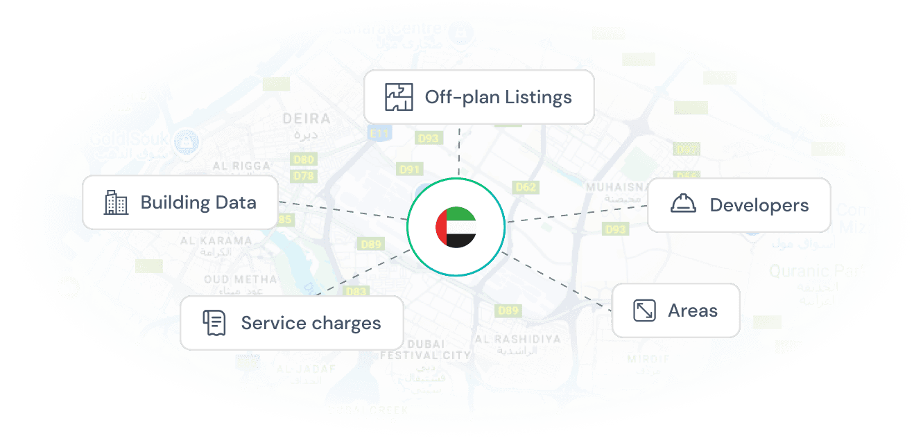 Access a full data of the UAE real estate landscape, including all UAE Emarites Dubai, Abu Dhabi, Sharjah, Ajman, Ras Al Khaimah, and Umm Al Quwain Discover detailed insights on every off-plan and internal inventory of sell and rent listing, target and understand the market beyond their usual zones.