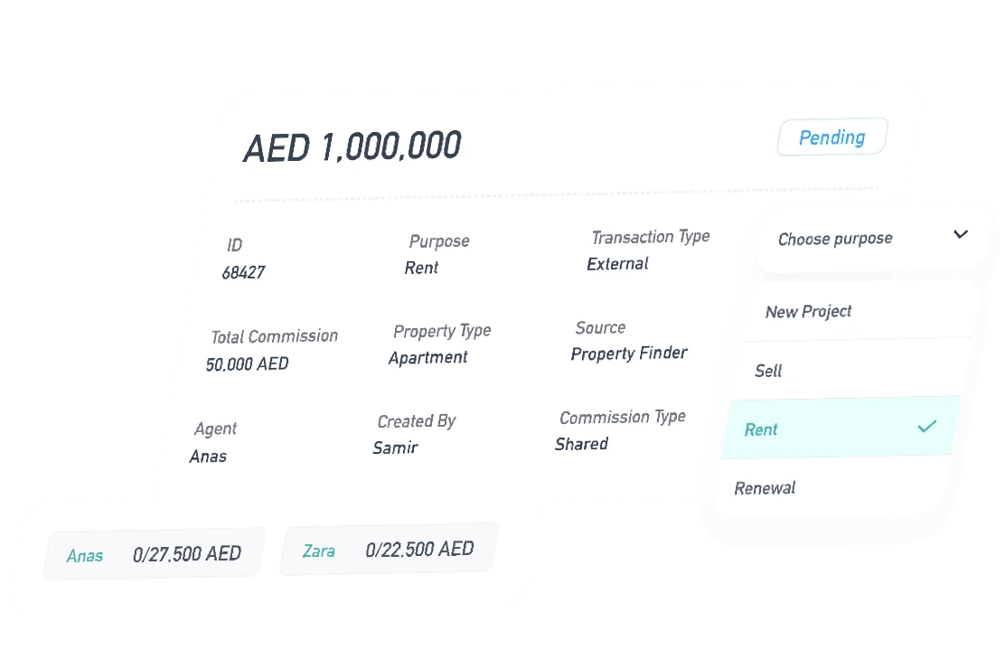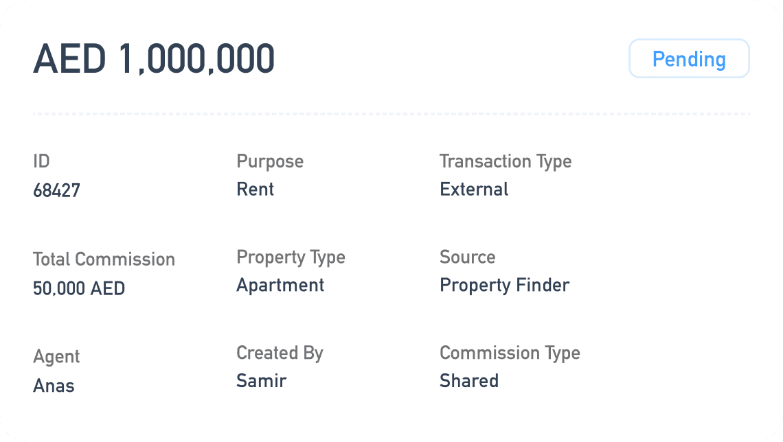 Find transactions in seconds. Analysis your performance in micro. Search by location, property type, developer, source, agent, area, or commission type and export full reports when needed.